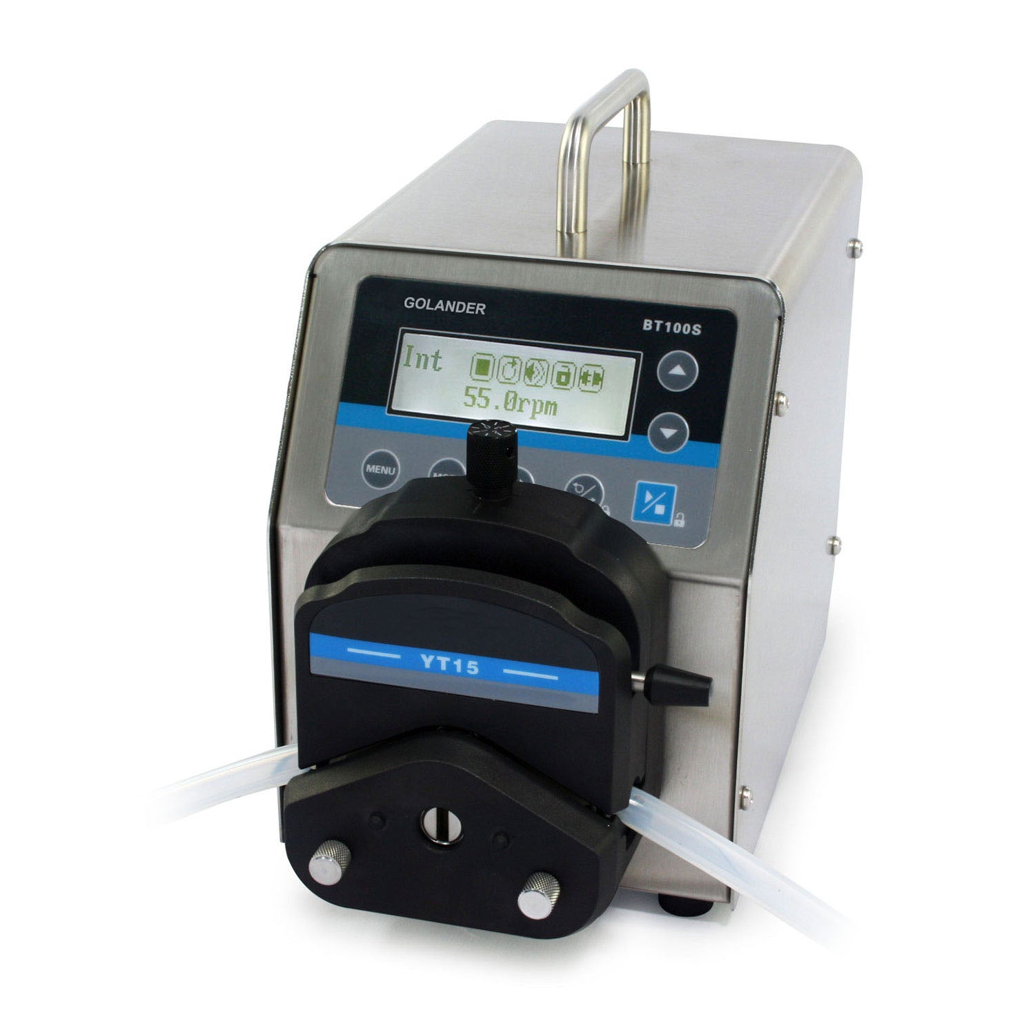 The BT100S variable-speed peristaltic pump offers a flow rate ranging from 0.0001 to 720 mL/min, depending on the drive rpm, pump head, and tubing size. In addition to reversible direction, start/stop, and adjustable speed functions, it also features a Time Dispense Mode and Anti-Drip function. The RS485 MODBUS interface enables easy communication with external devices such as PC, HMI or PLC.