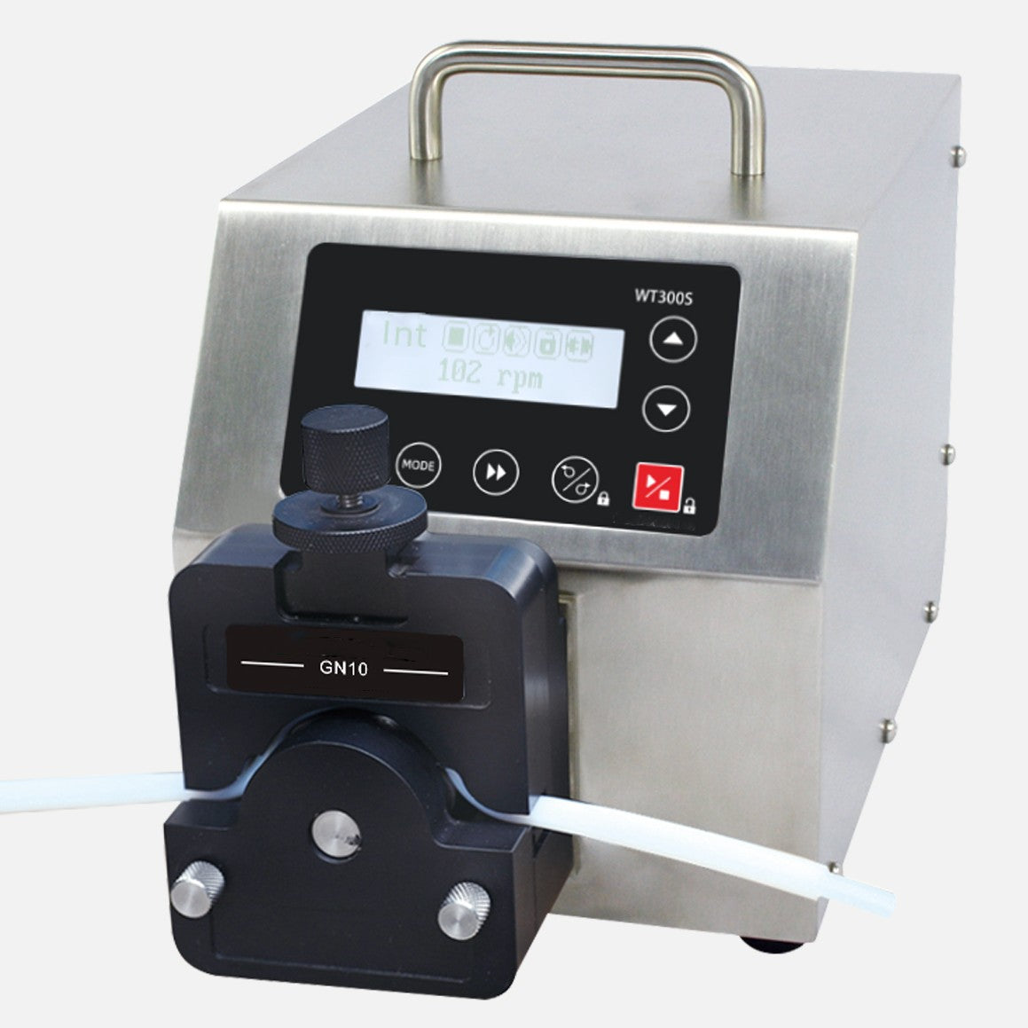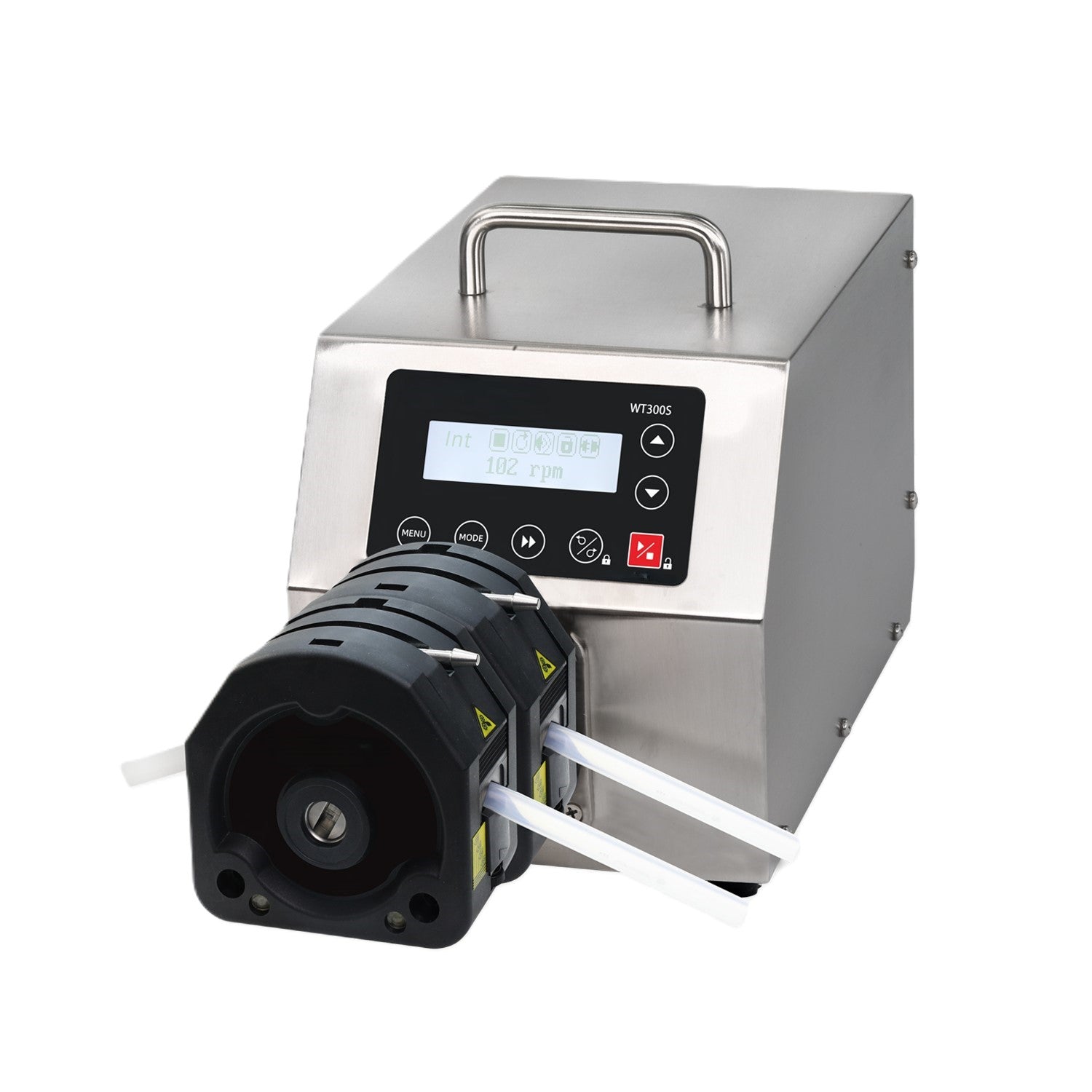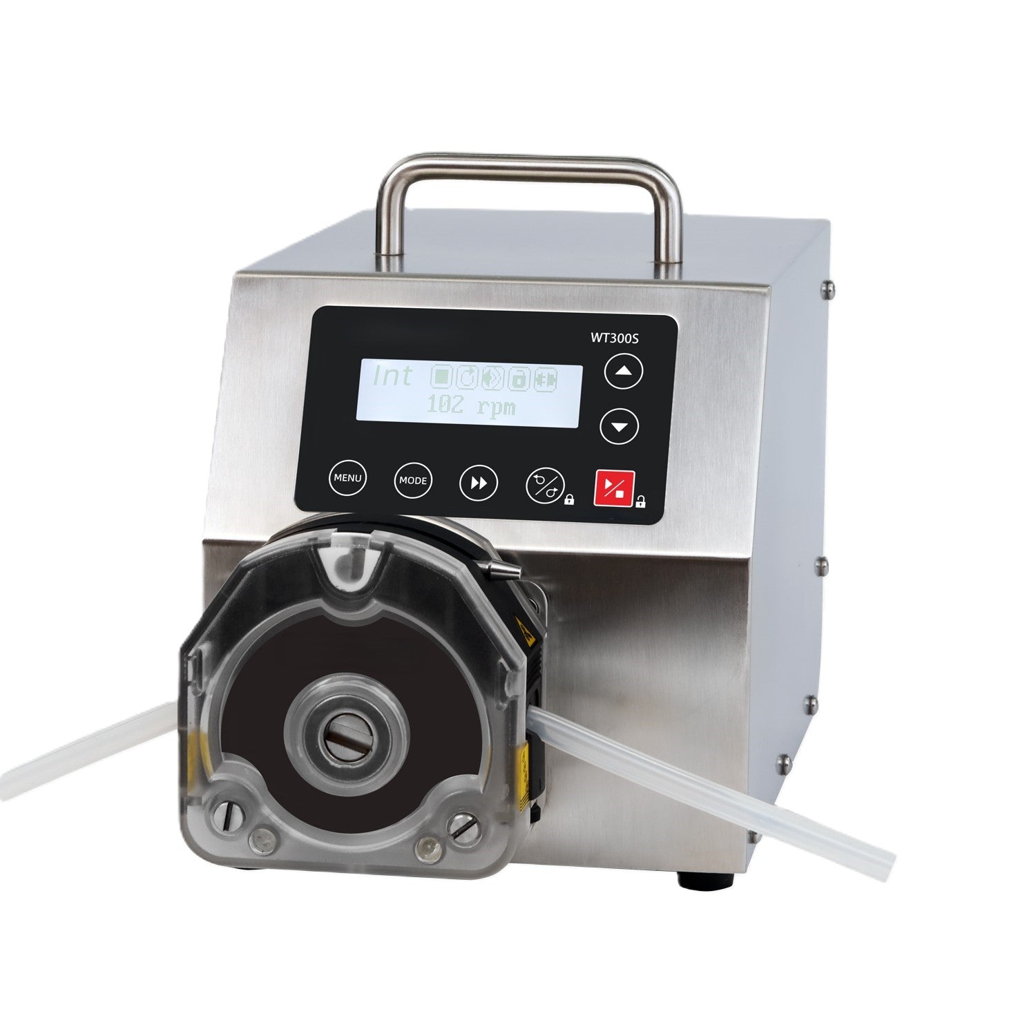 The WT300S High Torque Variable Speed Peristaltic Pump, powered by a maintenance-free DC brushless motor, is robust, powerful, and can be cascaded with multiple pump heads. It features fundamental operations including reversible direction, start/stop, full speed (for rapid cleaning), and adjustable speed, all controllable through external signals. The pump is further equipped with a time dispensing function. Enhanced communication capabilities are facilitated through the RS485 MODBUS interface, enabling effective interaction with external devices such as PCs, HMIs, or PLCs.